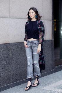- 上衣:T恤、衬衫、针织衫,甚至是吊带衫,都能和牛仔裤完美搭配。